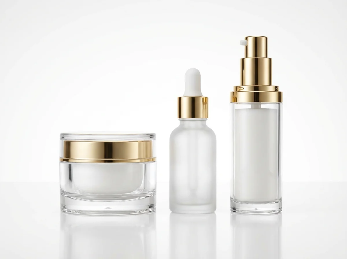 厚壁亚克力膏霜瓶、精油滴管套件、复杂结构泵头。外观品质达到光学级无瑕标准,支持高端电镀与烫金工艺。